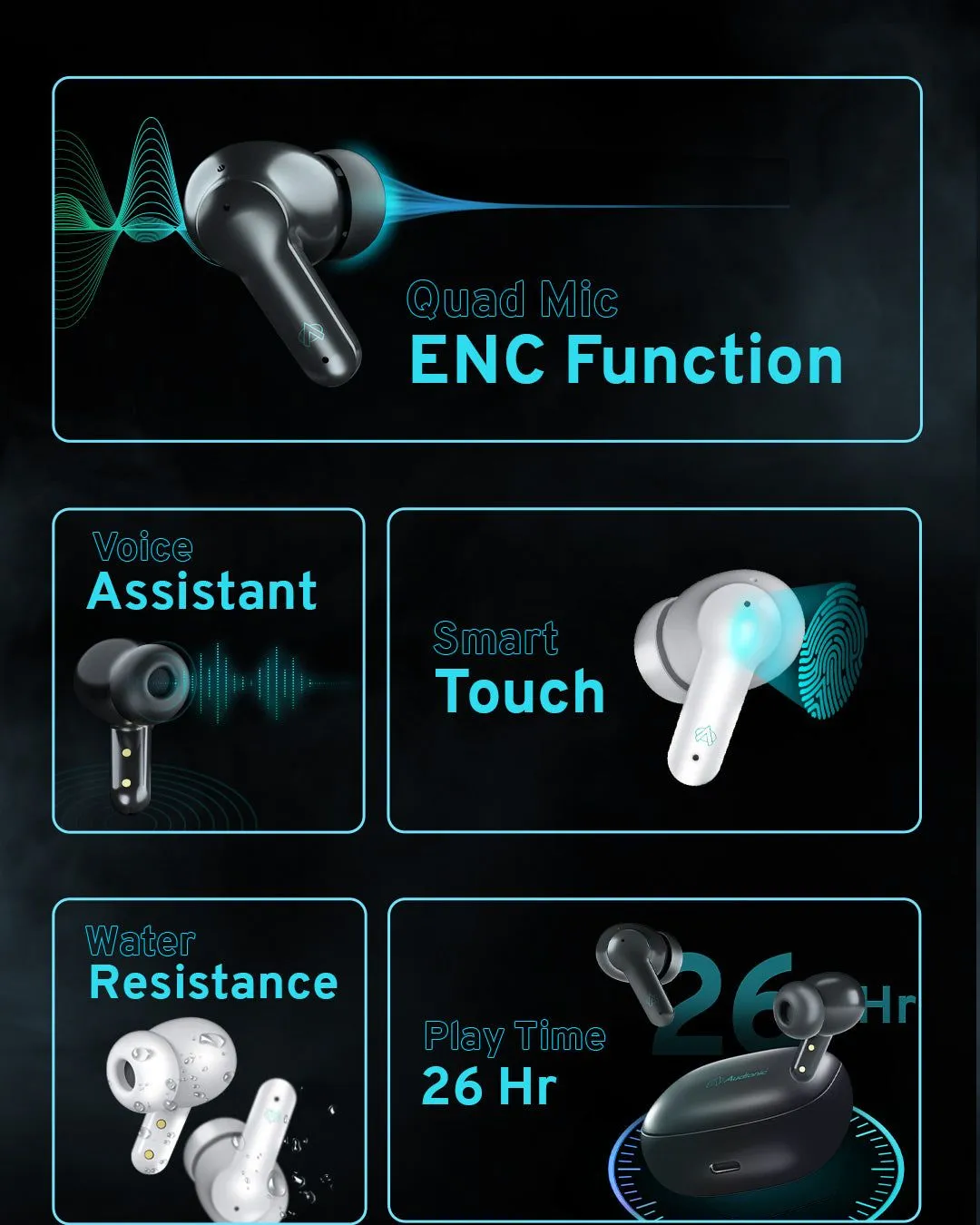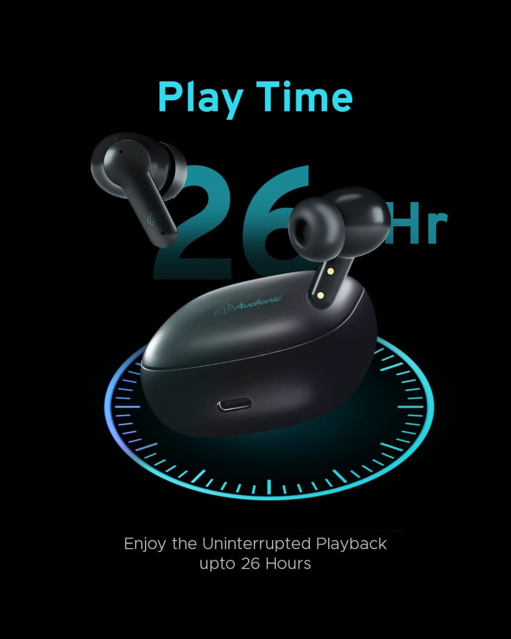 Specifications of Audi0nic Airbud 550 Slide Airbuds - Best Wireless ENC Airbuds Play time: About 7 hours. 1 Year Brand Warranty